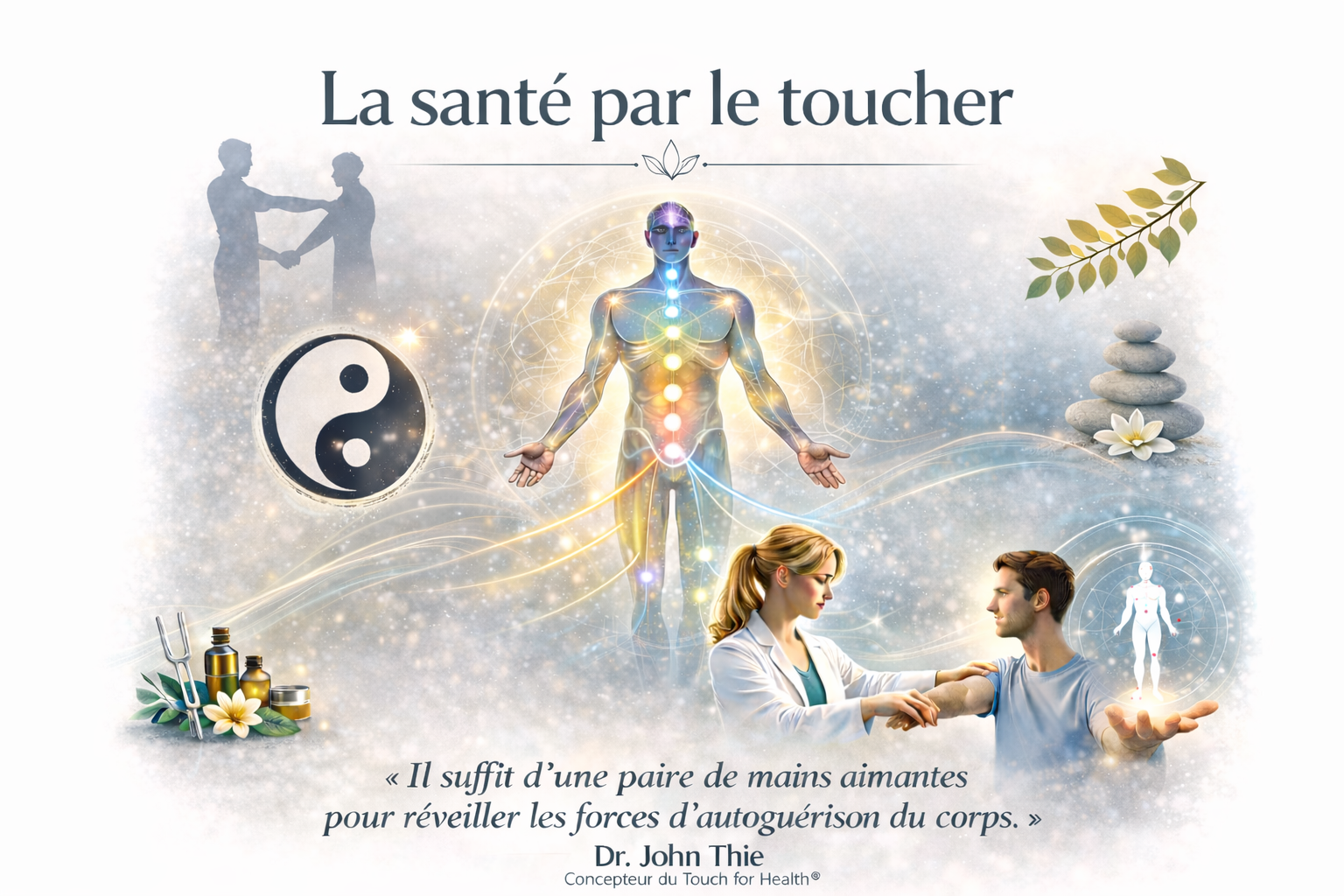 La santé par le toucher est l’essence même de la kinésiologie. Elle repose sur la relation entre le système musculaire et tous les autres systèmes du corps humain. Ainsi, à chaque méridien d’acupuncture sont associés des muscles et un organe. Nous arrivons donc à établir un profil ou bilan énergétique en testant ces différents muscles. Une fois les déséquilibres énergétiques détectés nous utilisons des techniques, la plupart issues de la médecine chinoise, pour rééquilibrer le système énergétique de la personne.